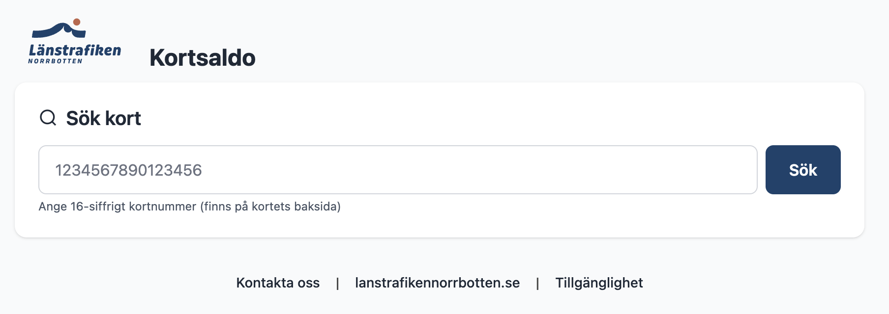 - Fyll i ditt kortnummer som står på baksidan av ditt busskort, 16 siffror utan mellanslag.